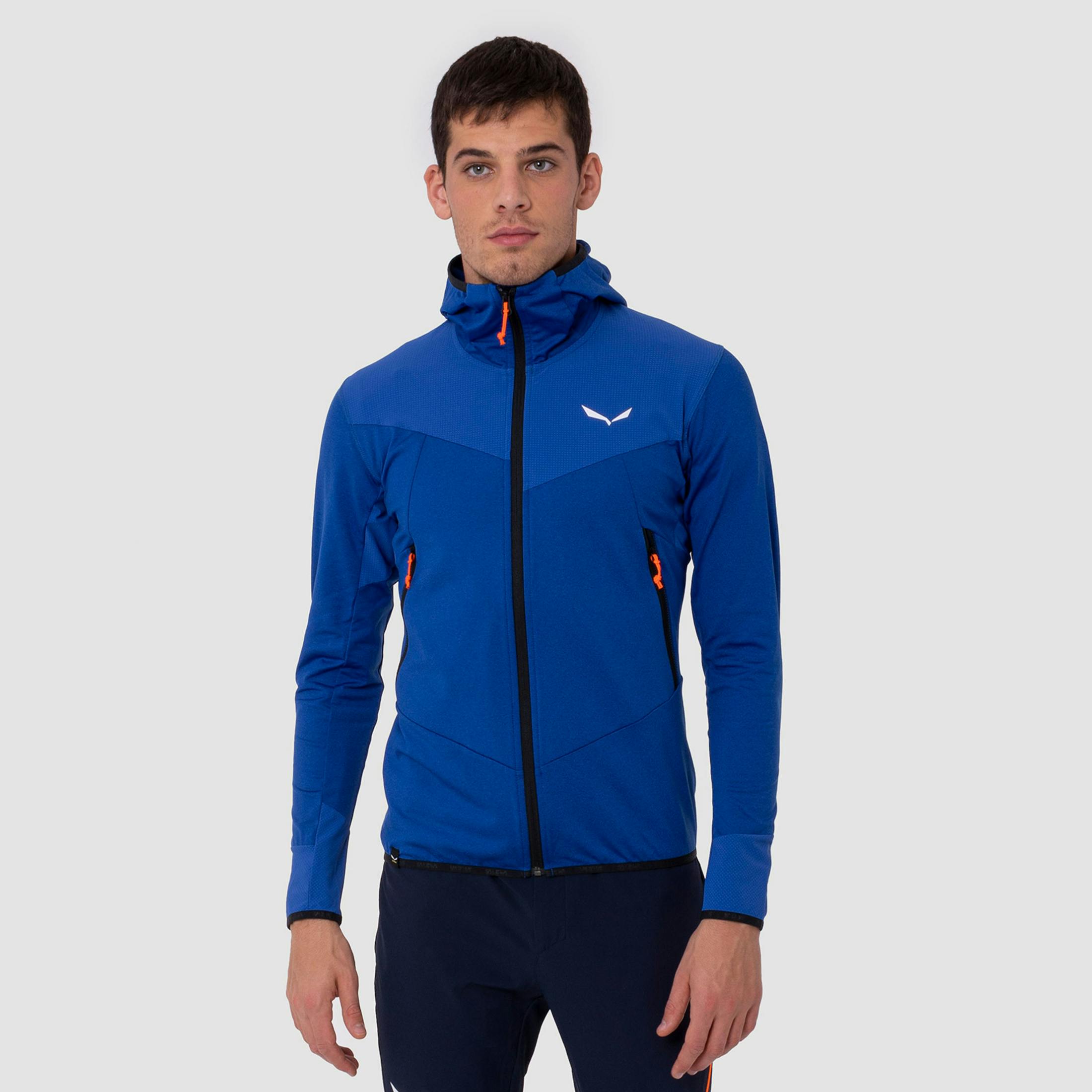 A lightweight, men’s hybrid technical fleece hoodie with rock-resistant Durastretch inserts for alpine climbing and summer mountaineering.