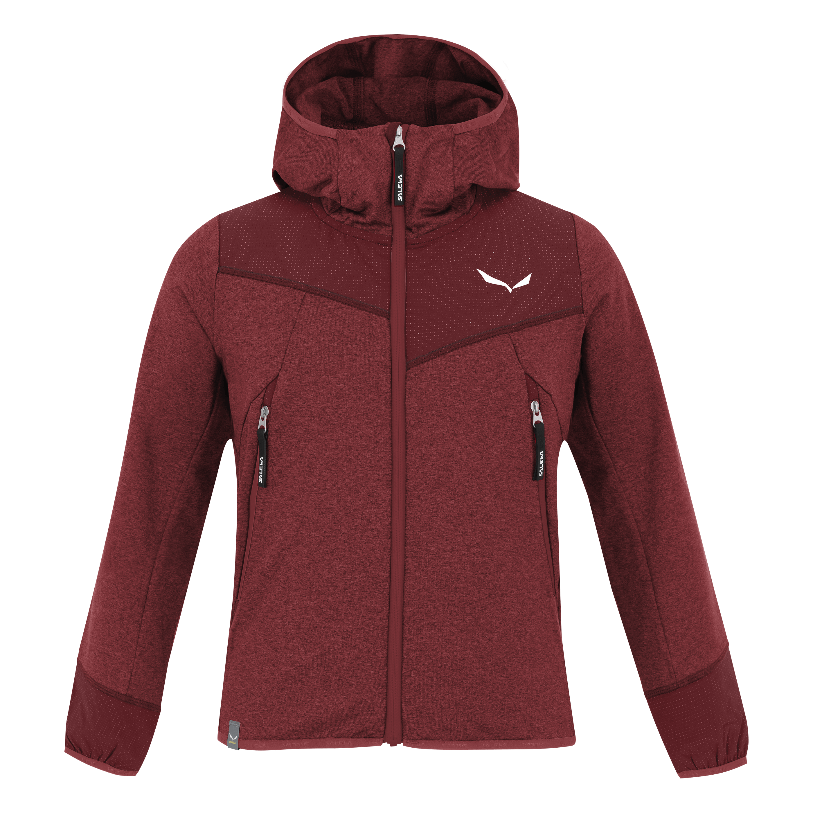 Ein leichter, hybrider Fleecehoody für Kinder mit abriebfesten Einsätzen aus Durastretch für Bergabenteuer.