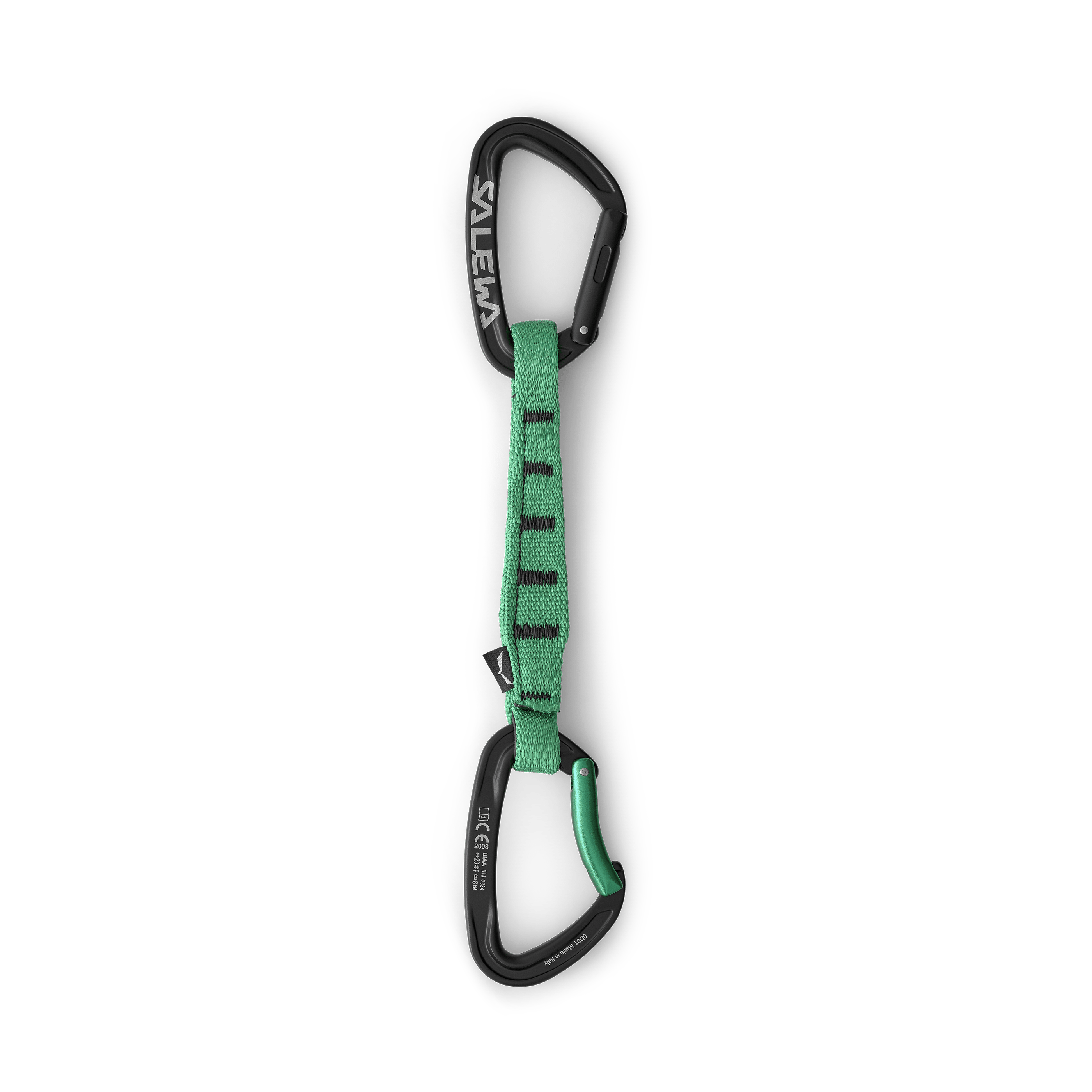Die Ortles 170 Quickdraw kombiniert einen leichten Karabiner mit geradem Schnapper und Keylock-Nase mit einem vorgeformten, gebogenen Karabiner, die mit einer hochfesten 170-Millimeter-Nylonbandschlinge verbunden sind.