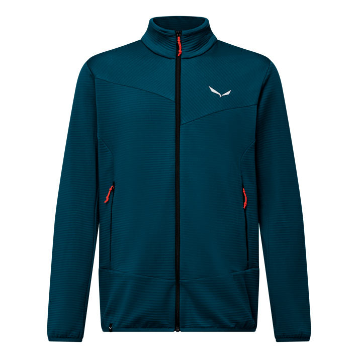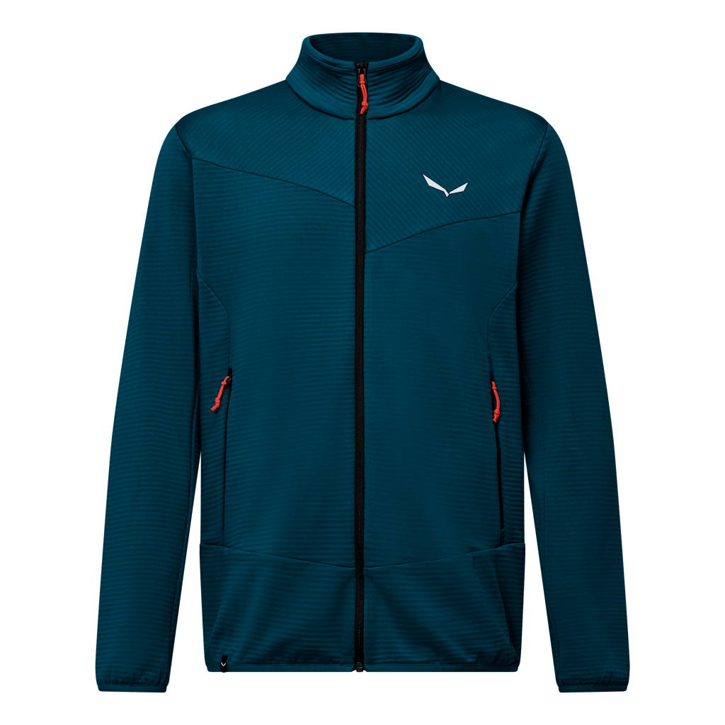 Features wie die zwei seitlichen Reißverschlusstaschen sowie die elastischen, vor Kälte schützenden Bündchen an den Ärmeln und am Saum machen die Fleecejacke zu einem ganzjährigen Begleiter am Berg.