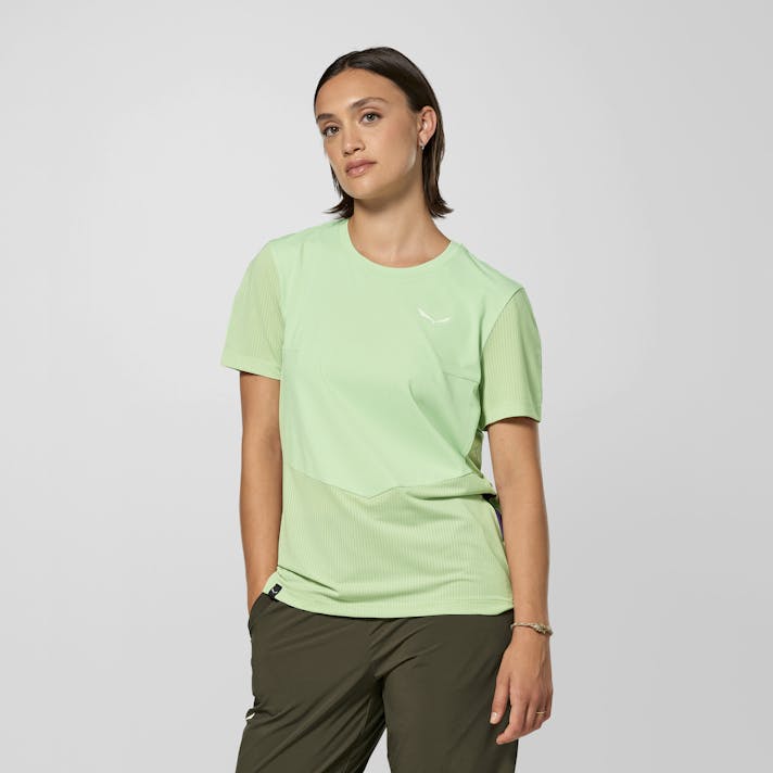 This lightweight T-shirt is built for outstanding moisture management. It matches soft, stretch wicking panels with bodymapped breathable mesh inserts for increased ventilation where you need it.