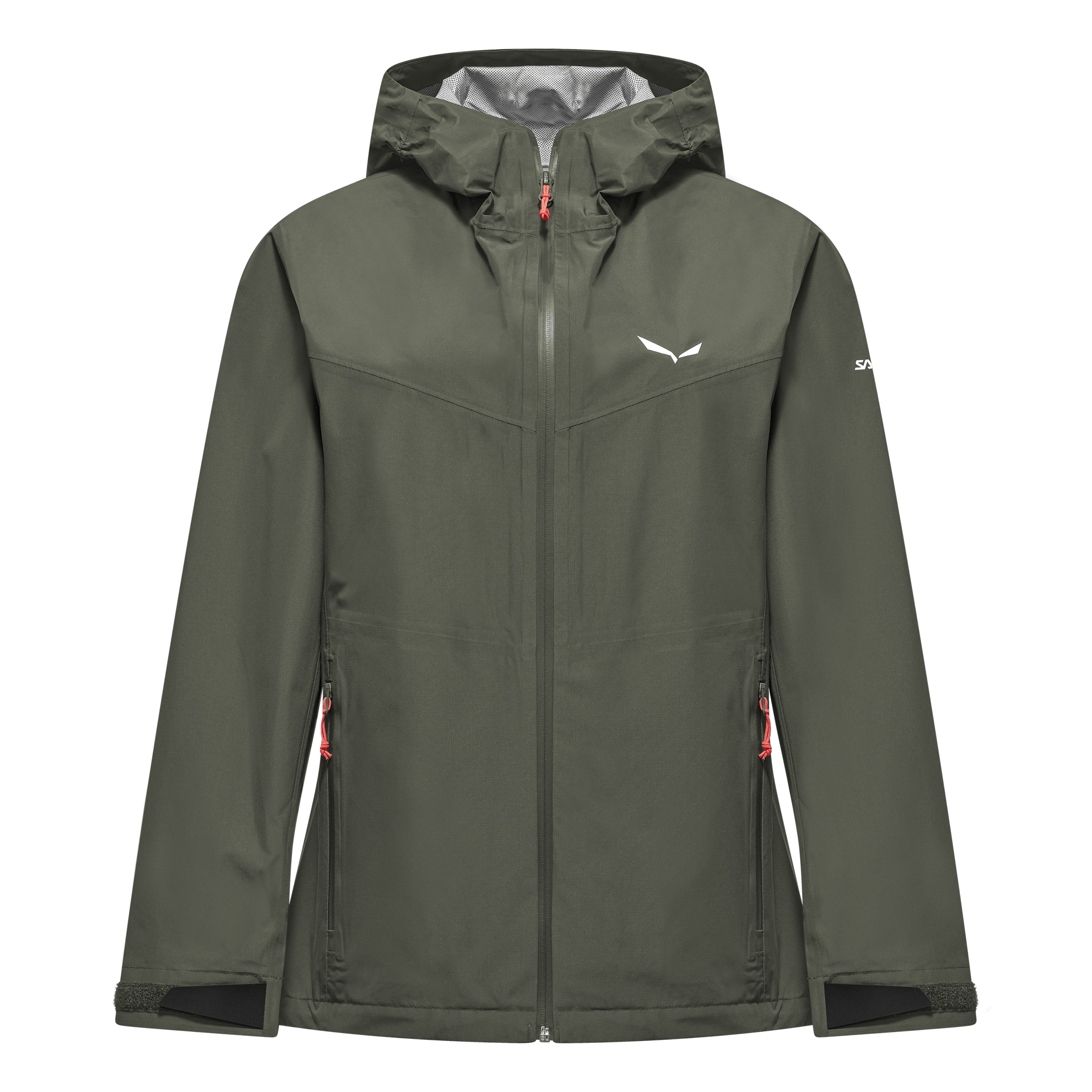 A women’s lightweight, waterproof and breathable 2.5-layer shell jacket for alpine trekking and hiking