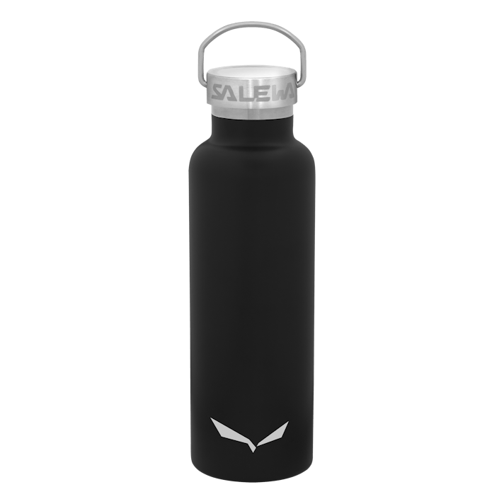 Una cantimplora clásica aislada de 0,65 l de acero inoxidable con una construcción de pared doble.