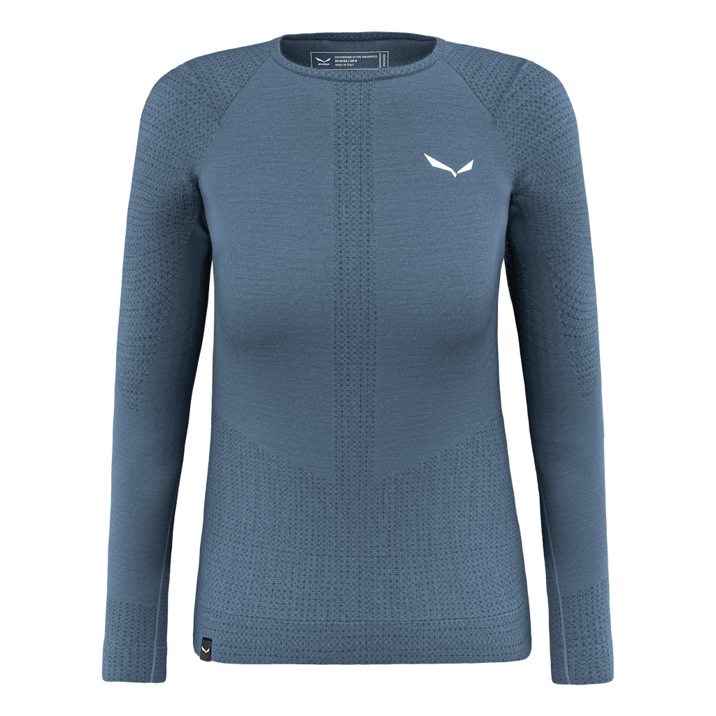 Un tshirt première couche en mérinos super doux au toucher pour femme, pour l'alpinisme, le ski de montagne, la randonnée rapide et le trekking en montagne.