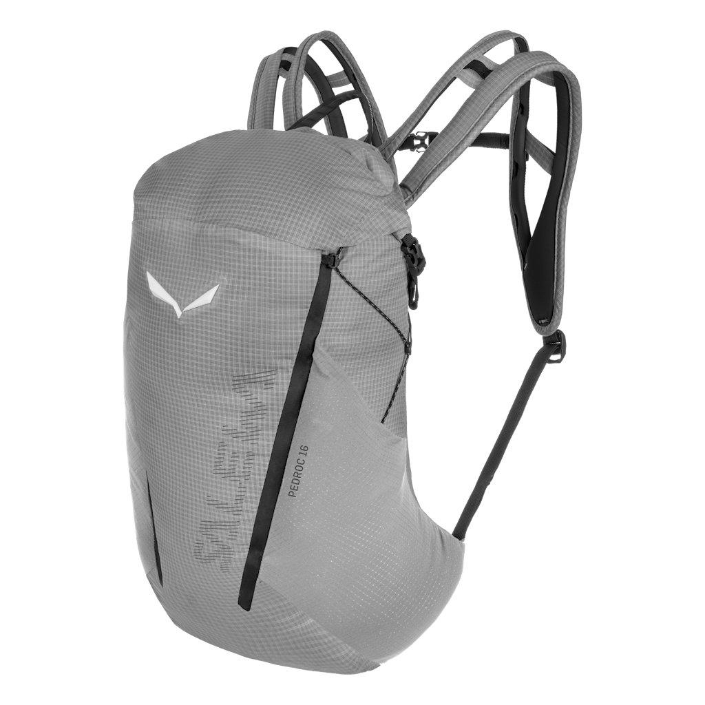A lightweight, compact roll-top speed hiking pack with a Dry Back Contact carrying system.