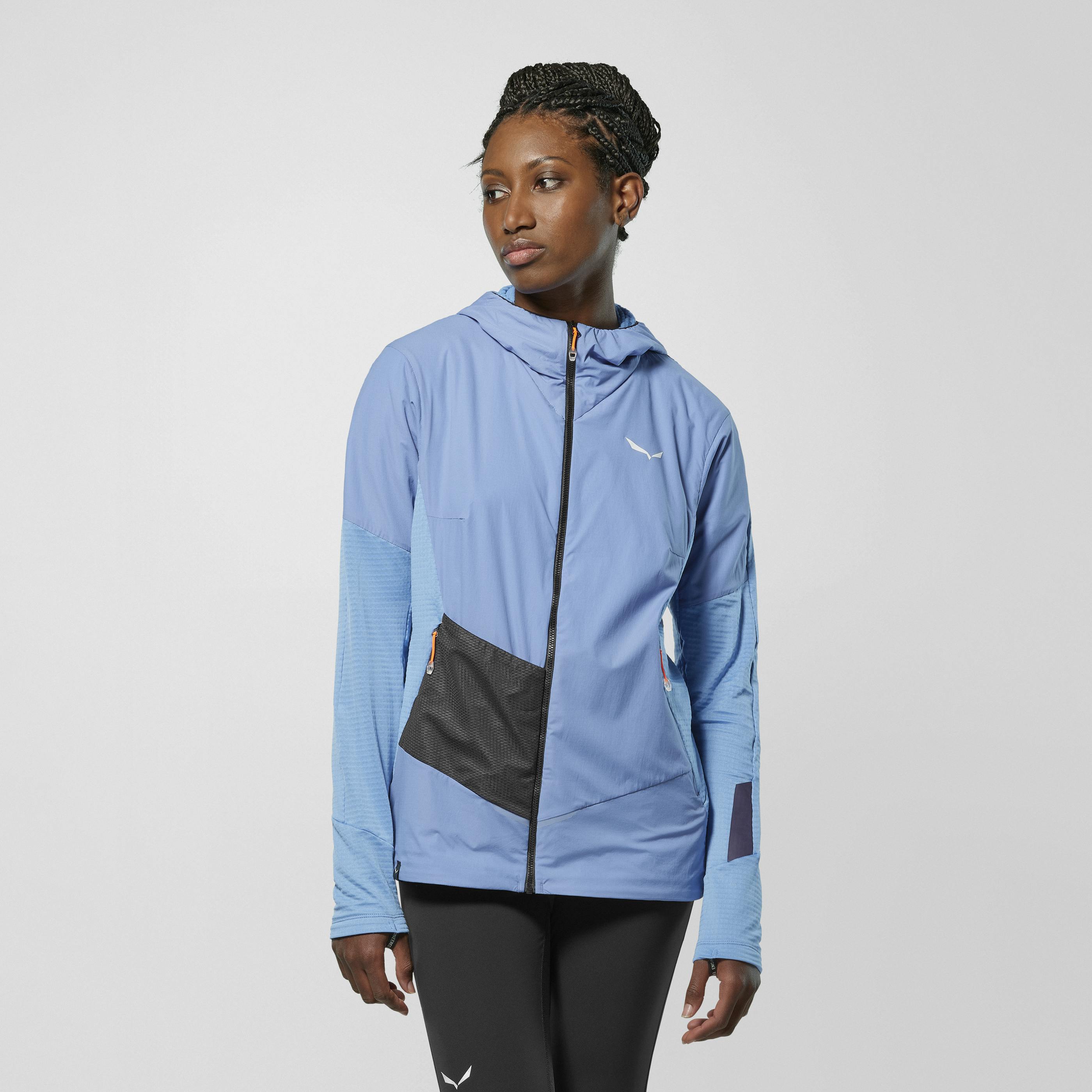 The versatile hybrid Pedroc Jacket features a superlight nylon windbreaker overlay at the front, high collar and snug-fitting hood. Designed for high-output dynamic activity, such as speed hiking in the mountains or urban runs on colder, windy days. Its fast-drying and moisture-wicking 95% recycled fleece fabric will help you keep the chills at bay.